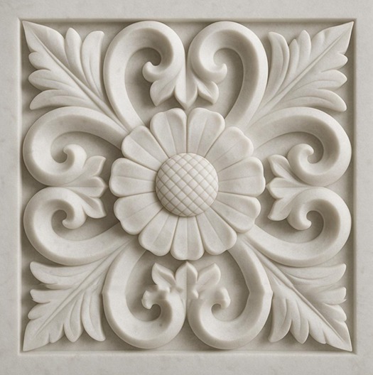 3. Carved Floral Stone Wall Mural