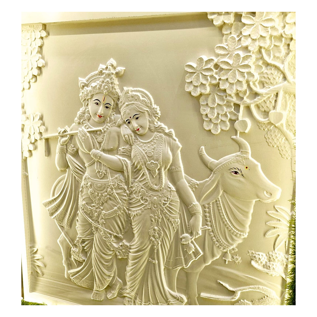 Celebrate eternal love and devotion with the divine radha krishna stone wall mural. This beautifully crafted divine radha krishna stone wall mural captures the enchanting figures of Radha and Krishna in intricate detail, bringing a sense of serenity and grace to your space. The skilled artistry highlights delicate expressions and flowing forms, while the natural textures of the stone add depth and dimension. Perfect for living rooms, prayer areas, or entryways, this mural not only enhances your décor but also offers exceptional durability, ensuring its colors and details remain vibrant for years to come.