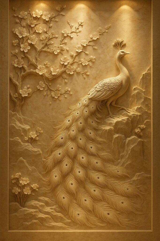 7. Peacock Stone Wall Mural